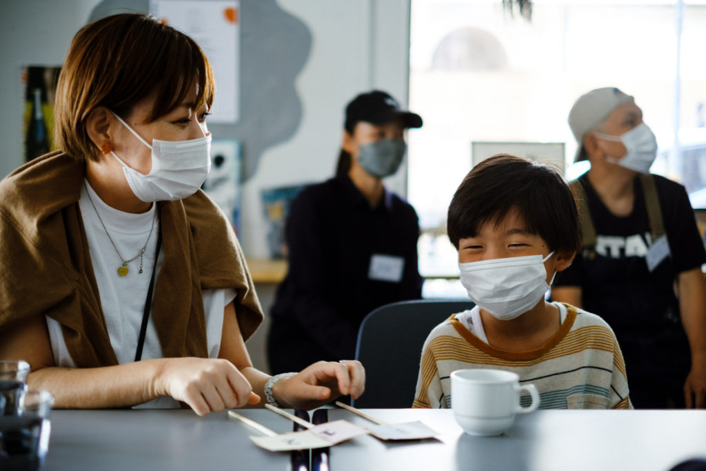 いざ、座談会当日。うしぼくの牛飼いさんたちと、地元神戸に住む大人とこどもが一同に集合。はじめはみんな少し緊張している様子。しかし、会が進むにつれ少しずつ牛飼いさんとの会話も増えてきて、表情がほぐれていくのを感じました。座談会では、牛やお肉について学べるクイズコーナーもご用意。4種類の牛の写真から、神戸ビーフになる資格を持つ但馬牛を見分けるクイズでは「こりゃあ、僕らでも間違うかもな〜」と声を漏らした牛飼いさんに対し、「この問題むずかしすぎ〜!」という子どもたち。